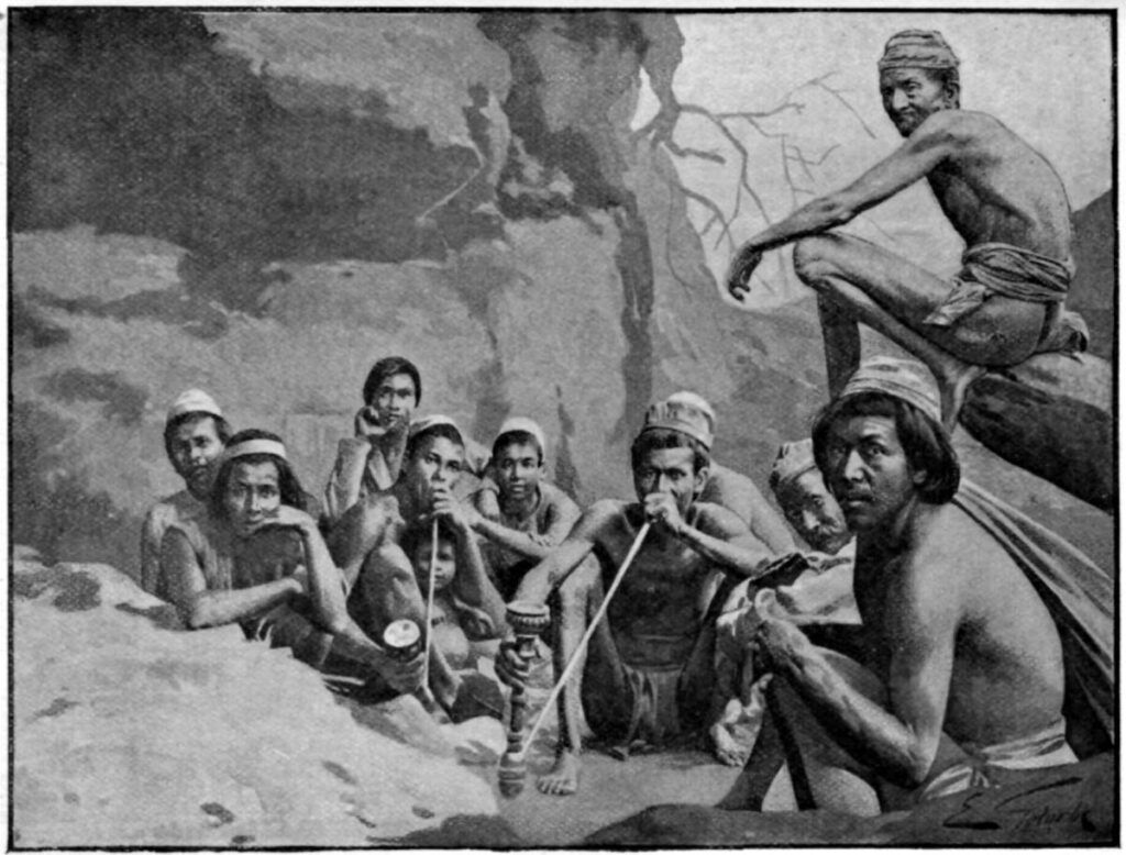 मैंने उस व्यक्ति को एक रुपया दिया, जिसे उसने हाथ में घुमाकर तौला। तुम आ सकते हो, उसने धीमी आवाज में कहा, “पर तुम्हें पछतावा होगा। तुम पर बहुत बड़ा दुर्भाग्य आएगा!” उस आदमी के लहजे में कुछ ऐसा अजीब सा था, मानो वह किसी समाधि में हो और किसी छिपे हुए खतरे का माध्यम हो। उसके शब्द कई मिनट तक मेरे दिमाग से नहीं निकले। मैंने यथासंभव उसका पीछा किया, क्योंकि वह बंदर जैसी फुर्ती से विशाल चट्टानों पर चढ़ जाता था। यह आसान काम नहीं था। हम एक चट्टान से दूसरी चट्टान पर कूदते-फांदते और गिरे हुए पेड़ों को पार करते हुए आगे बढ़े। अब पगडंडी दिखाई देने लगी जो एक गहरी खाई की ढलान से ऊपर की ओर जा रही थी। हम तब तक चलते रहे जब तक कि पसीने से तरबतर और हांफते हुए काफी ऊपर एक बड़ी गुफा तक नहीं पहुँच गए। वहाँ, गिरे हुए पेड़ों से बने एक चबूतरे पर लगभग एक दर्जन पूरी तरह नग्न पुरुष थे। कुछ अपनी एड़ियों पर बैठे थे और अपनी बाहों को अपने घुटनों पर टिकाए हुए थे, जबकि अन्य जमीन पर लेटे हुए थे। एक व्यक्ति पत्तियों के पाइप से तंबाकू पी रहा था। मैंने तुरंत उस समूह की एक तस्वीर खींची, क्योंकि वे अविश्वास, आश्चर्य और उदासी से भरी हुई भाव-भंगिमाओं के साथ उस अप्रत्याशित आगंतुक को घूर रहे थे, लेकिन उनमें डर का कोई निशान नहीं था। जब दो बुजुर्ग व्यक्ति अपने शुरुआती सदमे से उबर गए, तो वे उछल पड़े और उग्र इशारों से मुझे और पास आने से मना करने लगे। लेकिन मैं उनके घेरे में घुस गया और खुद को क्रोधित भीड़ से घिरा पाया। यहाँ अब तक कोई बाहरी इंसान नहीं आया है। तुम जल्द ही मरोगे! तुमने भगवान का अपमान किया है! एक बूढ़ा व्यक्ति क्रोध से बेकाबू होकर चिल्लाया। उसने अपने घुटने मोड़े, अपनी पीठ झुकाई और अपना सिर मेरी ओर किया। मुट्ठियाँ भींचीं। चेहरा हवा में आगे-पीछे झुलाया। उसके नाखून उसकी हथेलियों में जोर से गड़ गए। माथे को सिकोड़ने के बजाय, बूढ़े वनरावत ने अपनी भौहें ऊपर उठा लीं, जिससे उसका चिकना माथा गहरी झुर्रियों की एक श्रृंखला में बदल गया जो लगभग कान से कान तक क्षैतिज रेखाओं में फैली हुई थीं। केवल उसकी नाक के ऊपर एक गहरा निशान रह गया था। उसके चपटे और चौड़े नथुने फैलकर ऊपर की ओर खिंच गए, जिससे दो गहरी रेखाएं बन गईं जो उसकी नाक से उसके गालों तक जाती थीं। उसका मुंह खुला हुआ था, और उसके निचले होंठ का एक अजीब सा कंपन स्पष्ट रूप से दर्शाता था कि उसकी बोलने की क्षमता बहुत कम हो गई थी। उसकी आँखें, जो शायद मूल रूप से भूरी थीं, रंगहीन हो गई थीं।